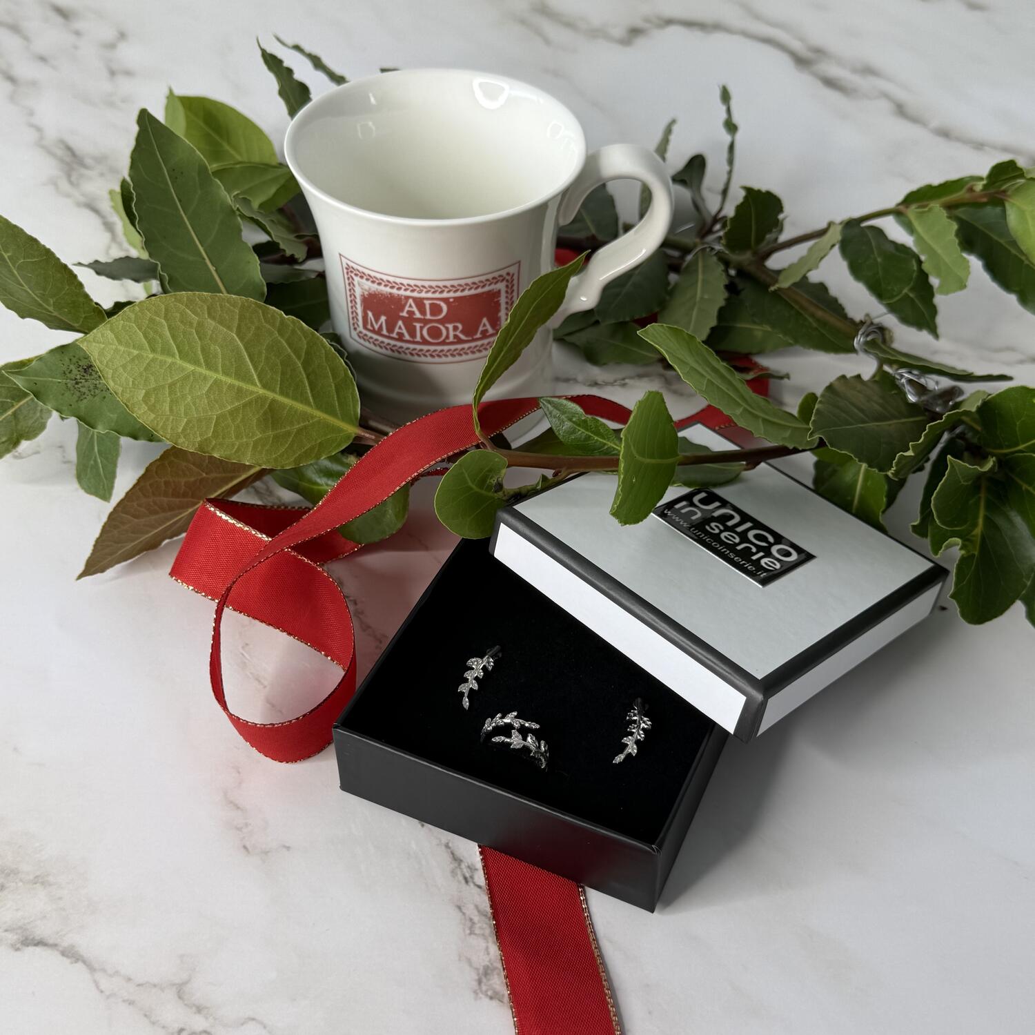 La tazza AD MAIORA è confezionata in una scatola nera opaca ed abbinabile ad altri oggetti della collezione.